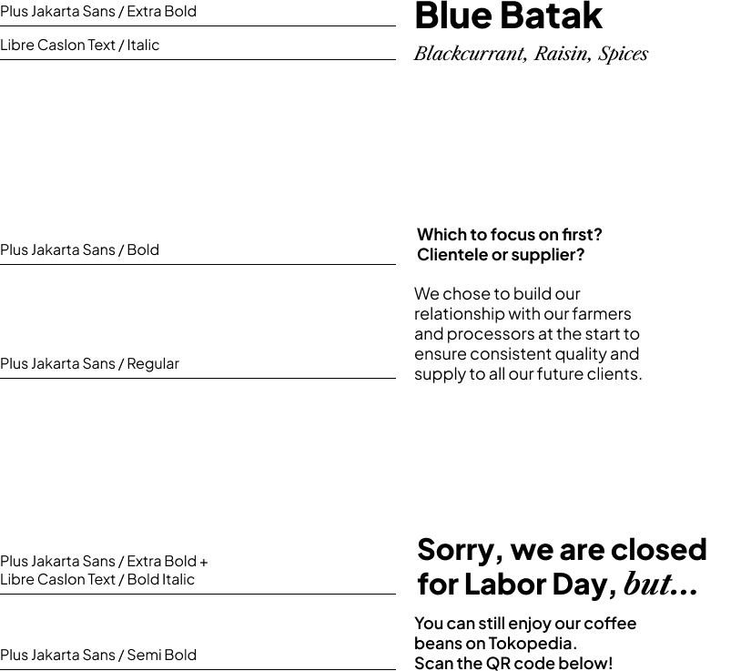 Lack of identity system, such as clarity on typography, color, and pattern. No packaging cup design that represents the brand story and stands through the test of time. Additionally, busy logomark when combined with image as background for social media content. The logotype has very fine line that is hard to distinguish from afar.